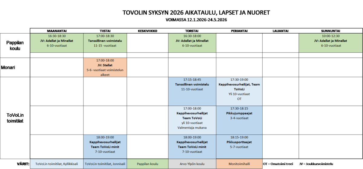 Kevätlukukausi 2026 alkaa viikolla 3. Ryhmiin ilmoittautuminen alkaa viikolla 1. Ryhmän tilanteen näet alta,